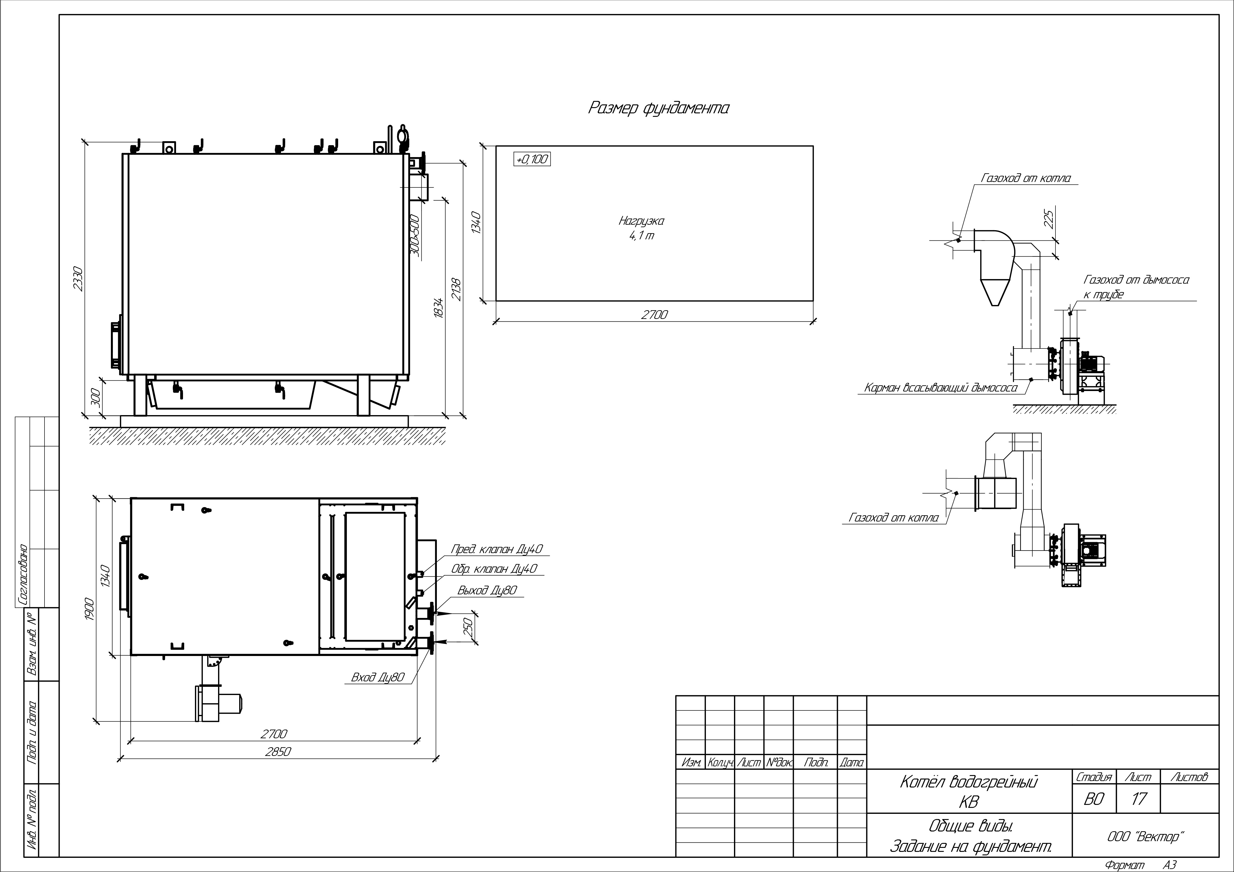 Масса котла (без воды): 3100 кг